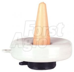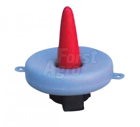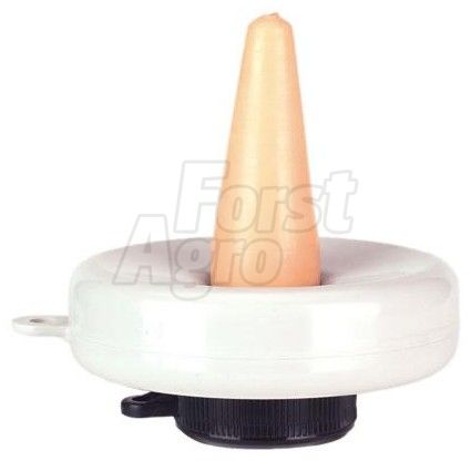 - Plastový plovací miskový cucák pro napájení telat s gumovým dudlíkem a kuličkovým ventilem.