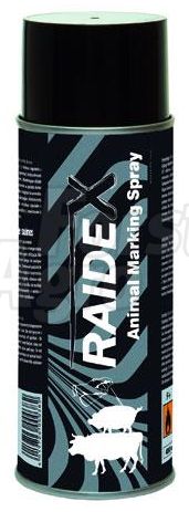 - Značkovací barva RAIDEX o obsahu 400 ml je určena pro aktuální označení zvířat při výběru pro transport, připouštění nebo pro sestavování nových skupin zvířat.